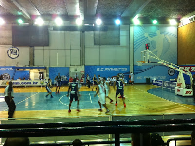Quando cheguei ao Paulistano enquanto certos jogos não tinham nem informação sobre se tinha torcida ou algo do tipo....no caminho era um plano B que não foi nada decidido. Até quem pode acompanhar os tweets ou a TL do twitter viu claramente o famoso PS e nem estava nos planos acompanhar esse jogo. Mas a falta de informação beirando sobre o jogo que iria levar que seria Palmeiras x Unitri Uberlândia...mata um de raiva e no caminho entre um ginásio ou outro faz a gente mudar isso...pra não ficar no risco outra vez igual sexta feira resolvi chegar ao Paulistano e o jogo já estava em andamento. Só que também não se tinha perdido nada sobre a partida, afinal o primeiro quarto esteve muito equilibrado e a vantagem de 21 a 17 no final do quarto a favor do Paulistano devido ao Pedro e ao Renato Carbonari que começaram indo bem a favor do Paulistano.